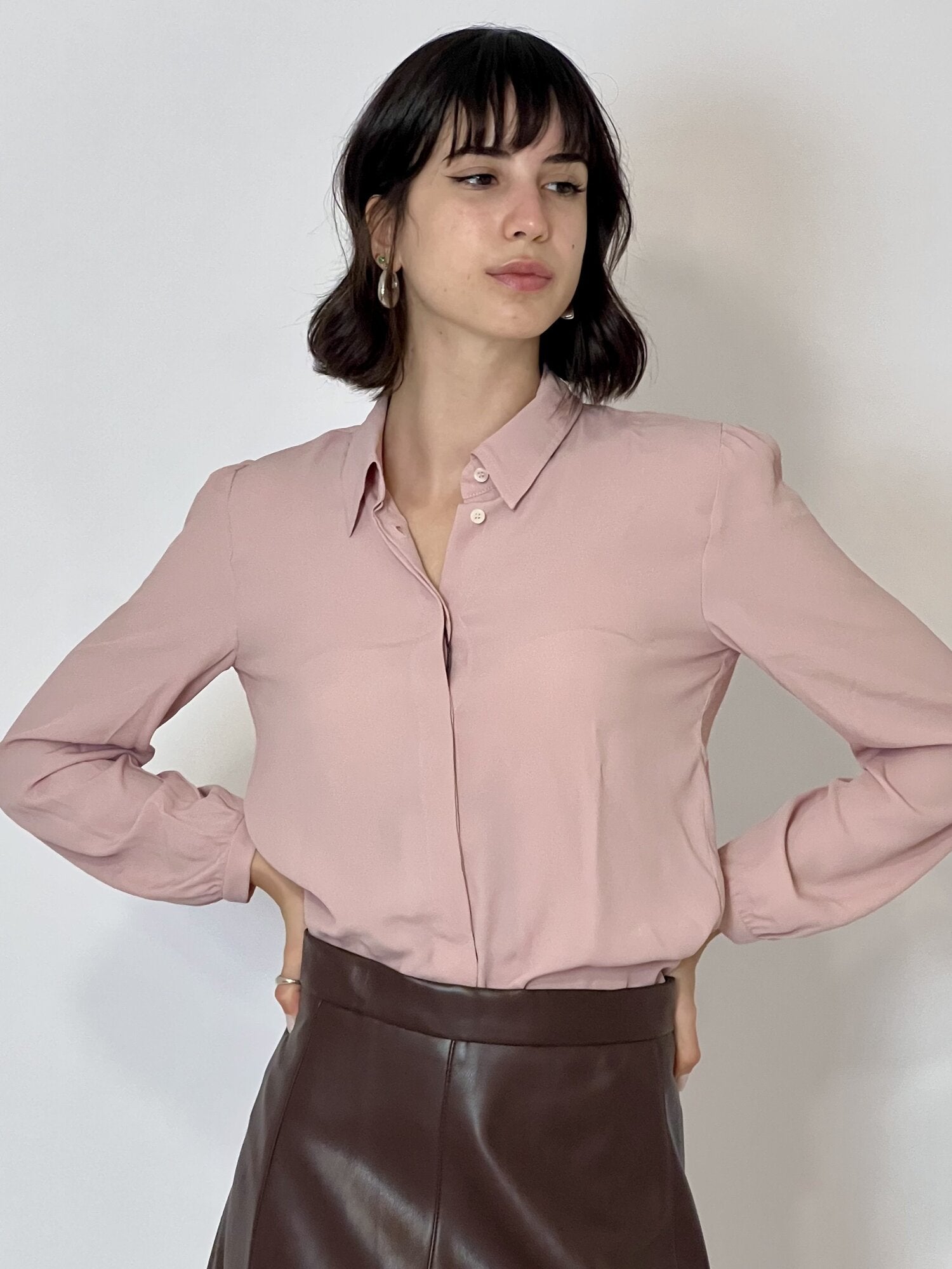 Camicia in crêpe Luis Rosa di Emme di Marella. Camicia in crêpe de Chine di misto seta dal Fit semi aderente. Collo a camicia con abbottonatura nascosta. Spacchi laterali. Polso basso con bottone. Disponibile in panna e rosa.