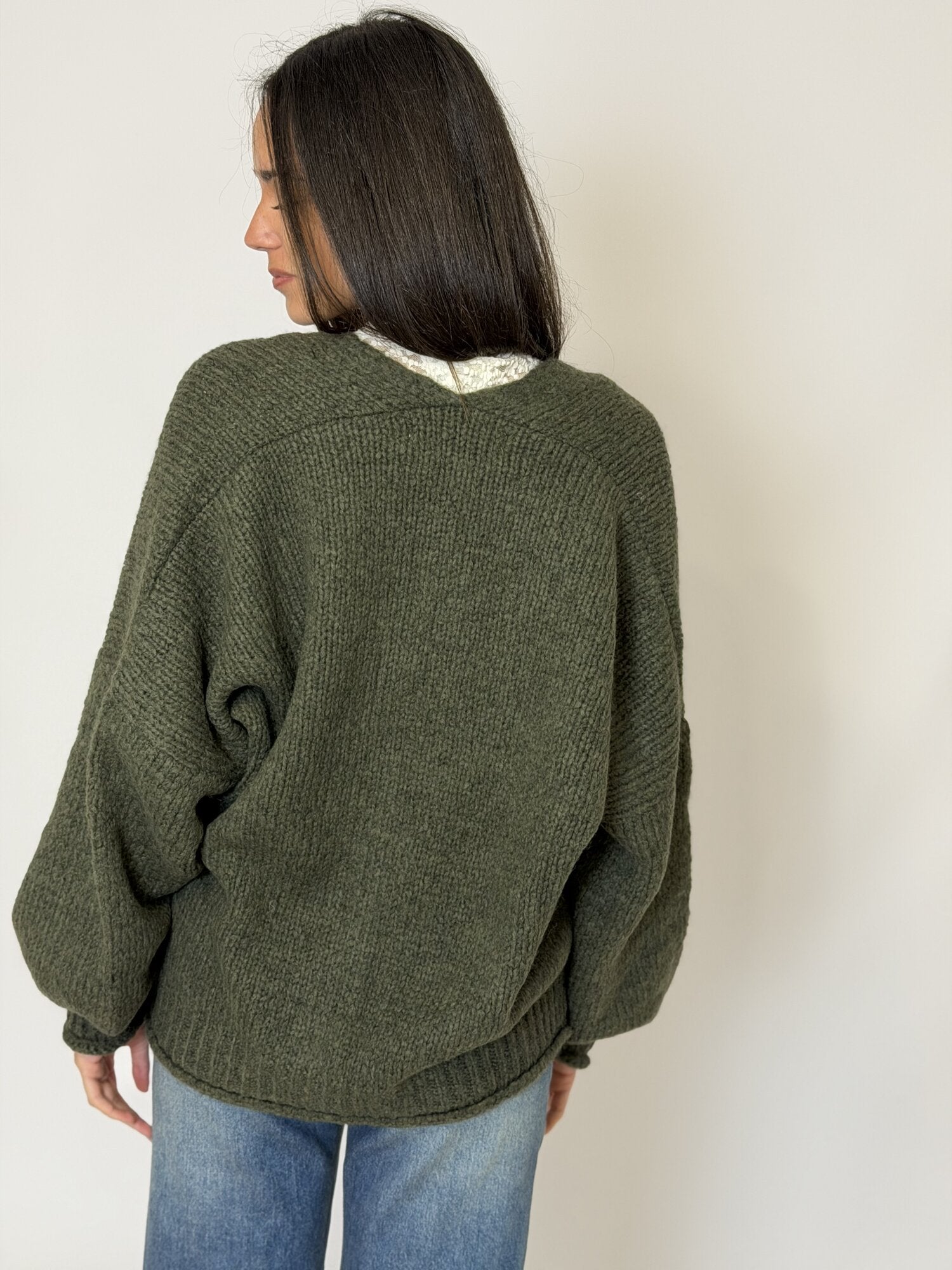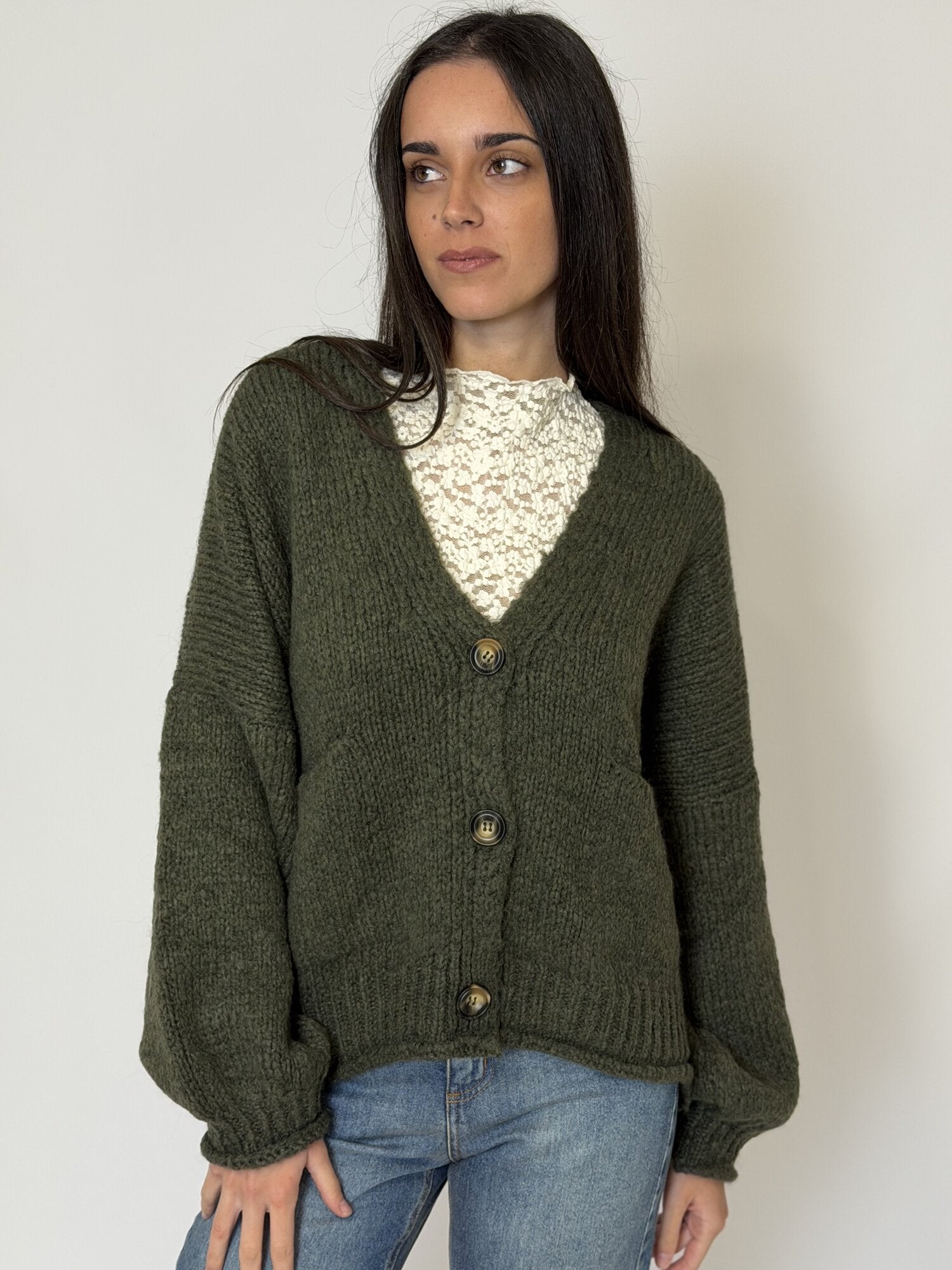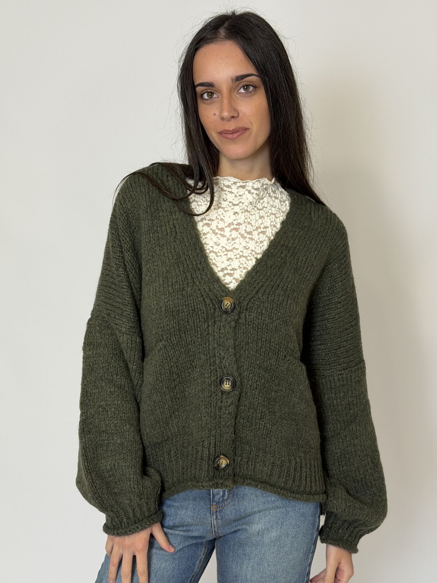 Cardigan over 3 Bottoni Verde Militare - Haveone