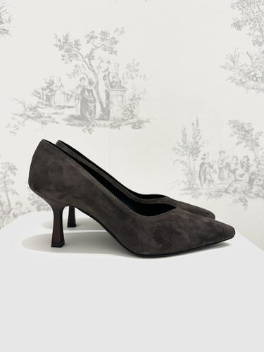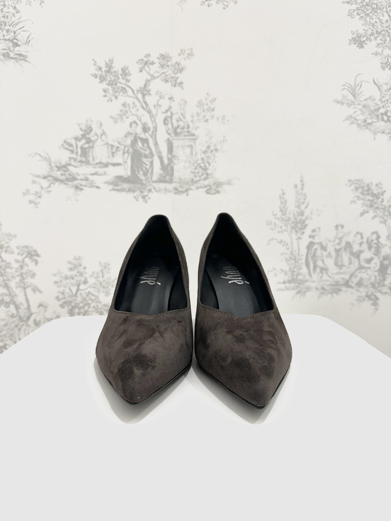 Decollete Punta Camoscio Moro di Ovyé. Decolleté a punta in camoscio con tacco e scollo a punta. Altezza tacco 7 cm. Disponibile in moro.