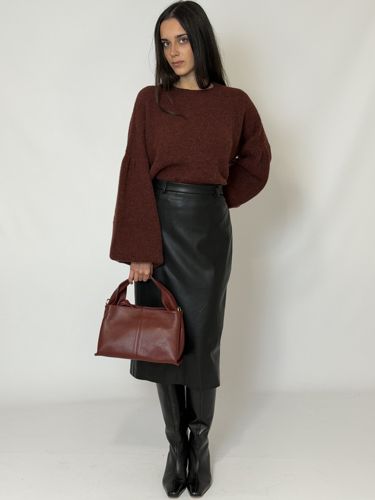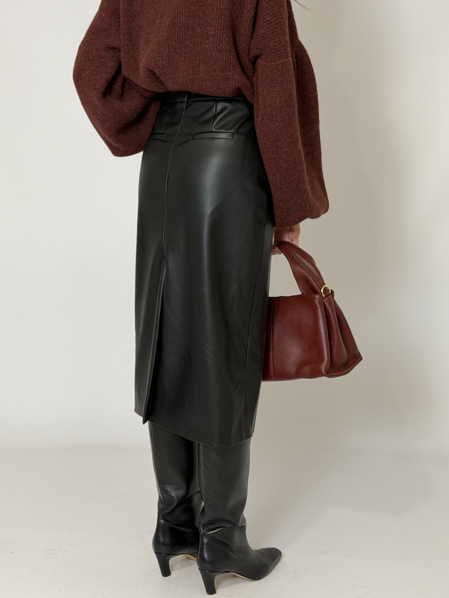 Gonna midi dritta ecopelle Nera - Vicolo