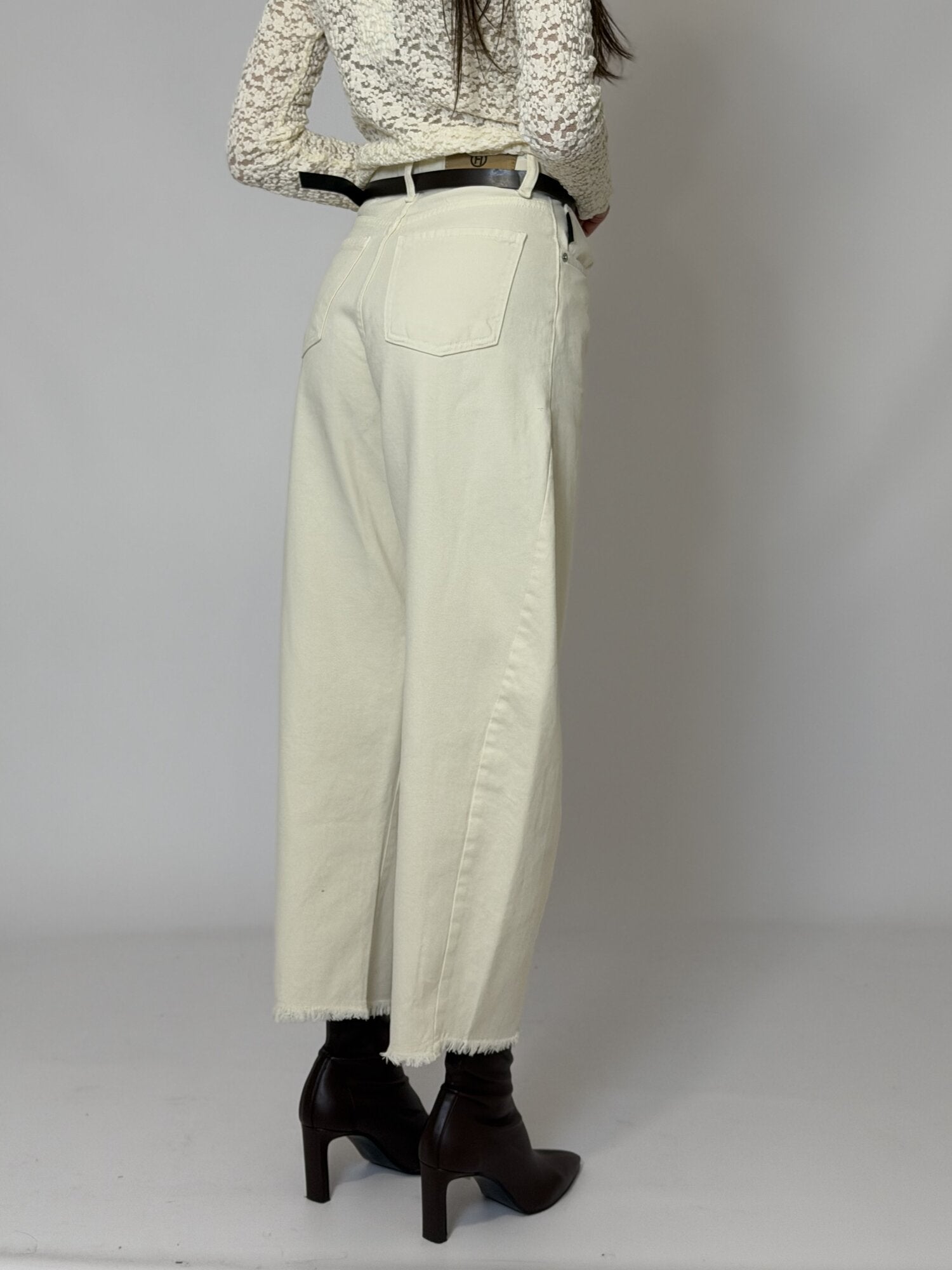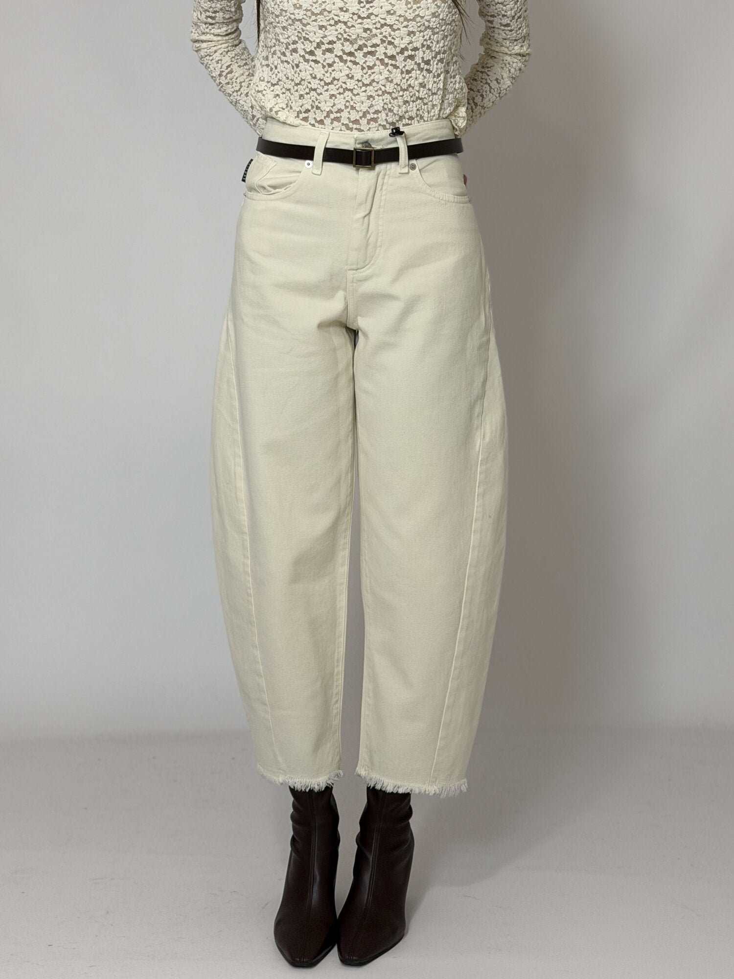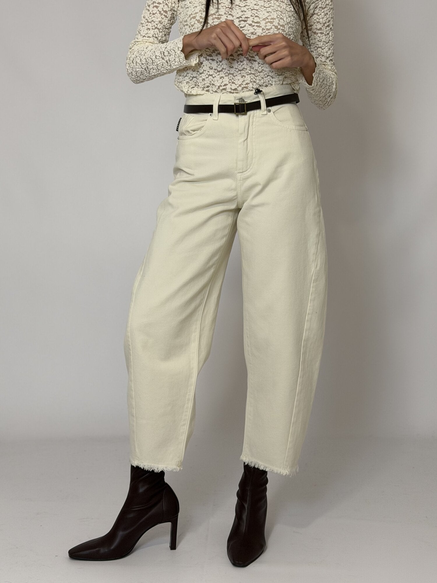 Jeans barrel sfrangiato con cintura panna - Haveone