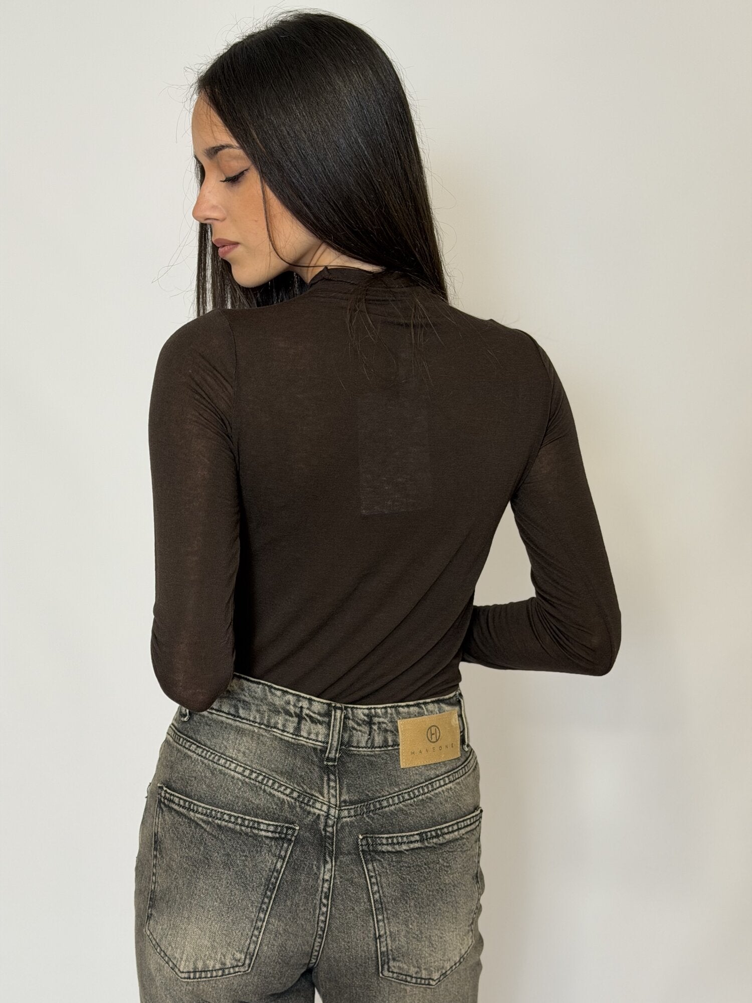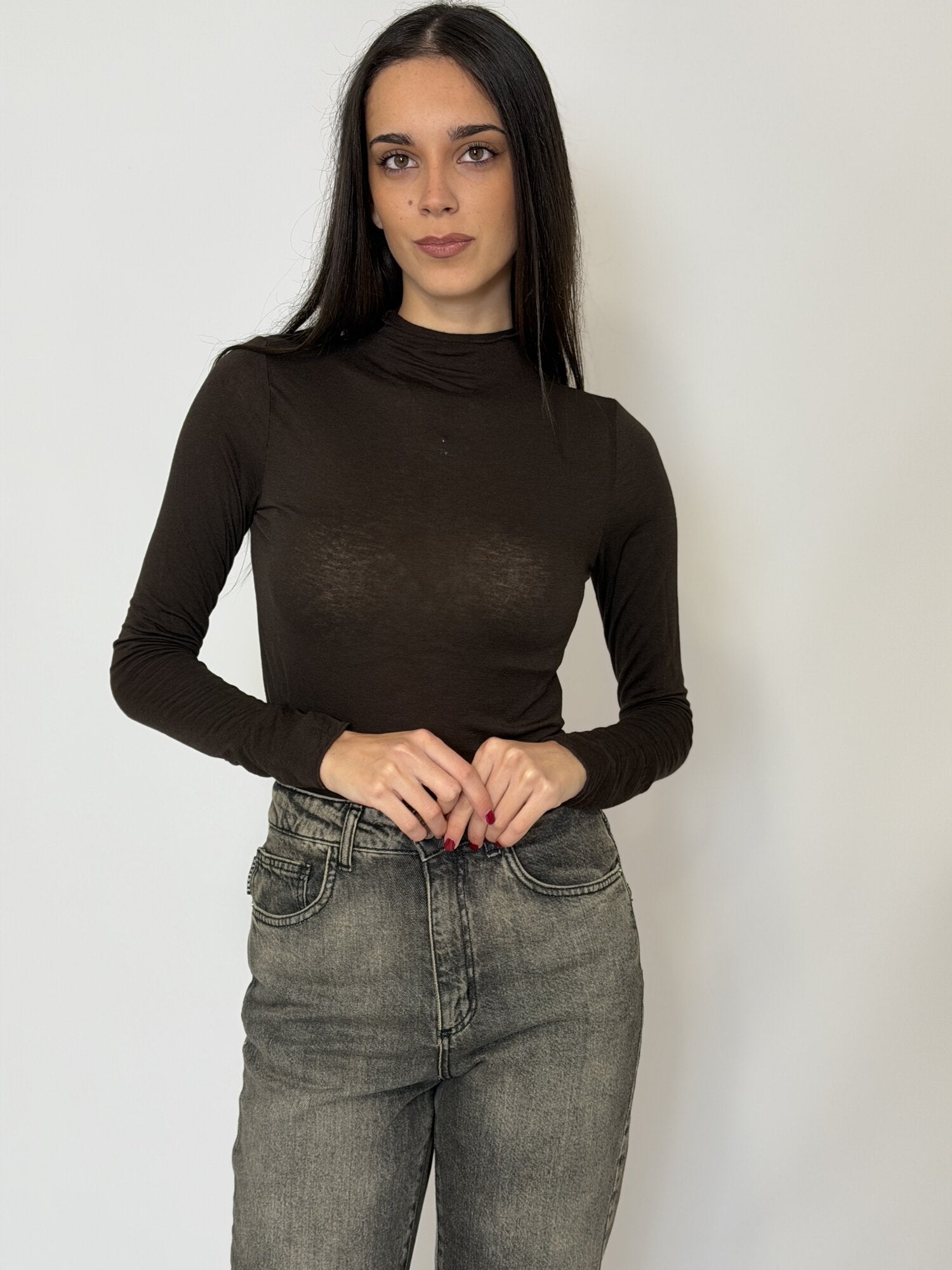 Maglia scollo cratere moro di Haveone. Maglia a maniche lunghe con collo a lupetto/cratere. Vestibilità aderente. Disponibile in nero, moro, panna e bordeaux.