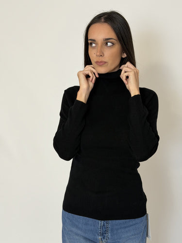 Maglia Dolcevita Nero di Haveone. Maglia basic in lana con maniche lunghe e collo alto, vestibilità aderente. Taglia unica. Disponibile in nero.