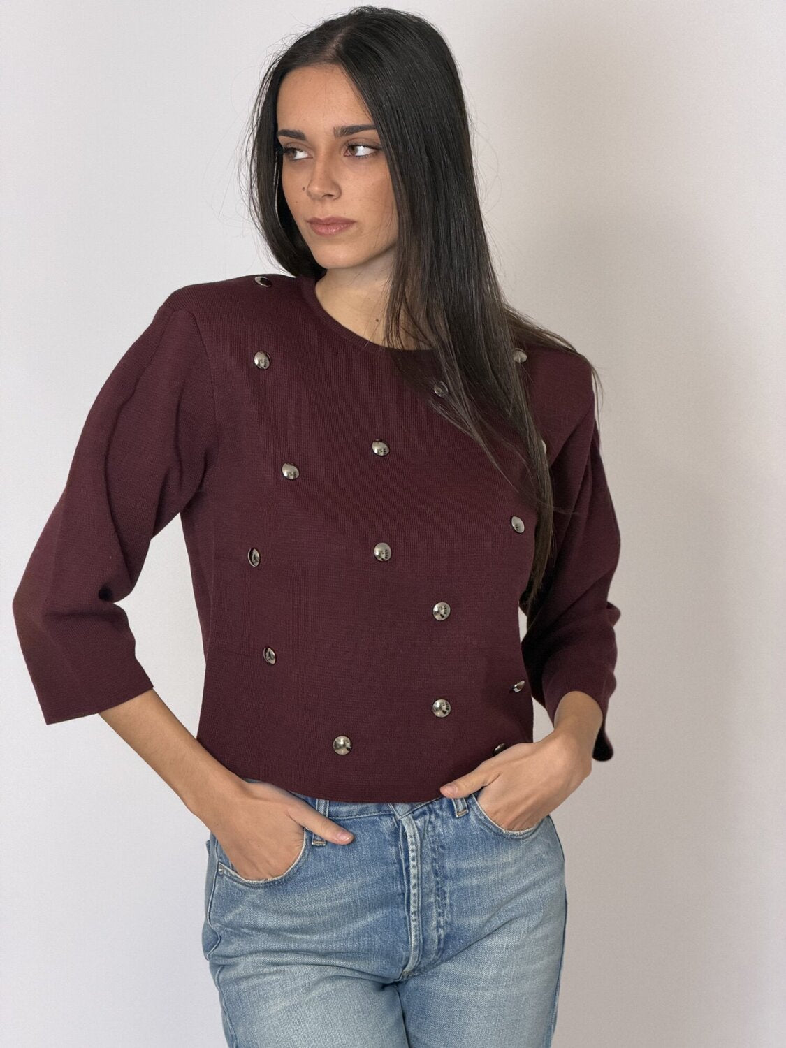 Maglia Girocollo Borchie Bordeaux - Haveone