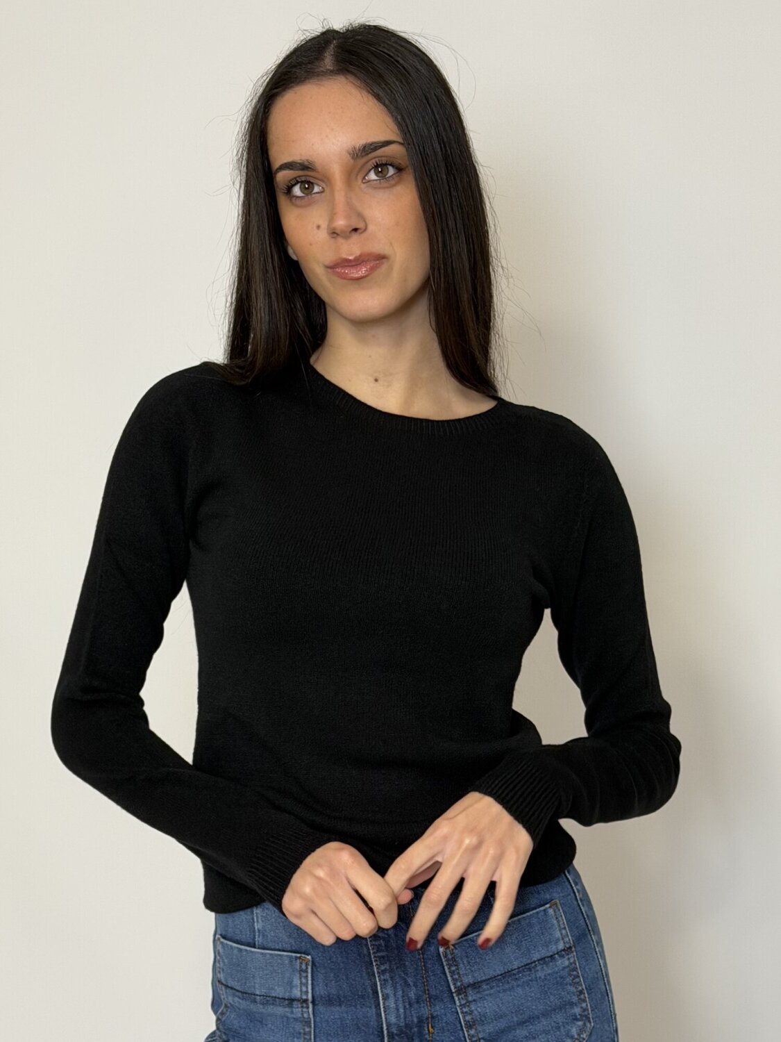 Maglia Girocollo Nero di Tensione In. Maglia girocollo a maniche lunghe, modello slim. Taglia unica. Disponibile in moro, nero, bordeaux, panna, giallo, blu.