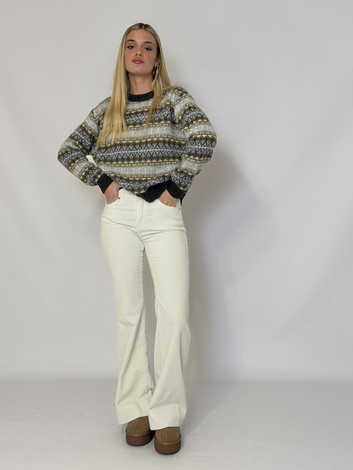 Pantaloni Flare a Costine Panna di Souvenir. Tessuto a costine. Vestibilità: Gamba aderente sui fianchi e svasata sul fondo. Disponibile in panna.