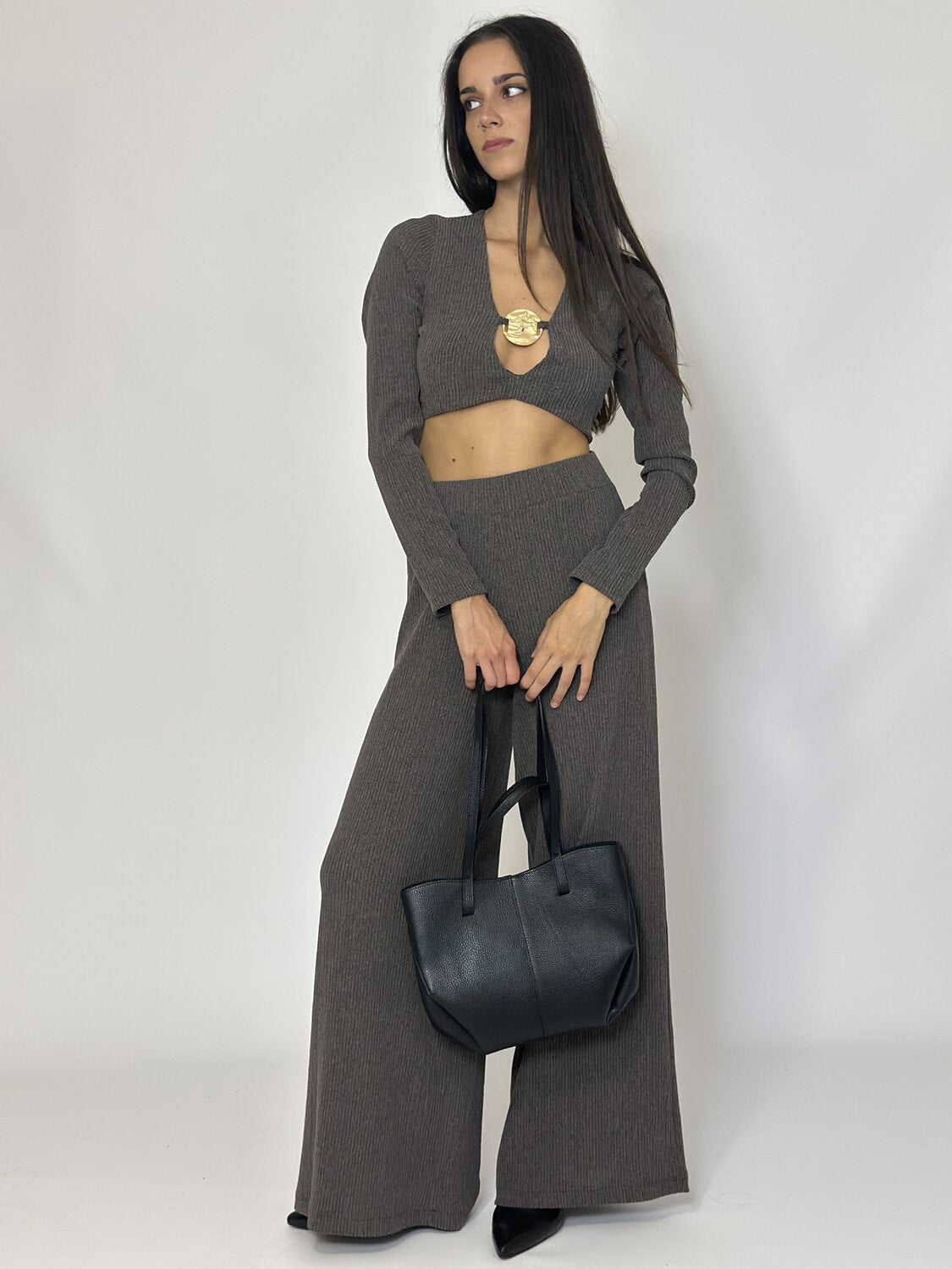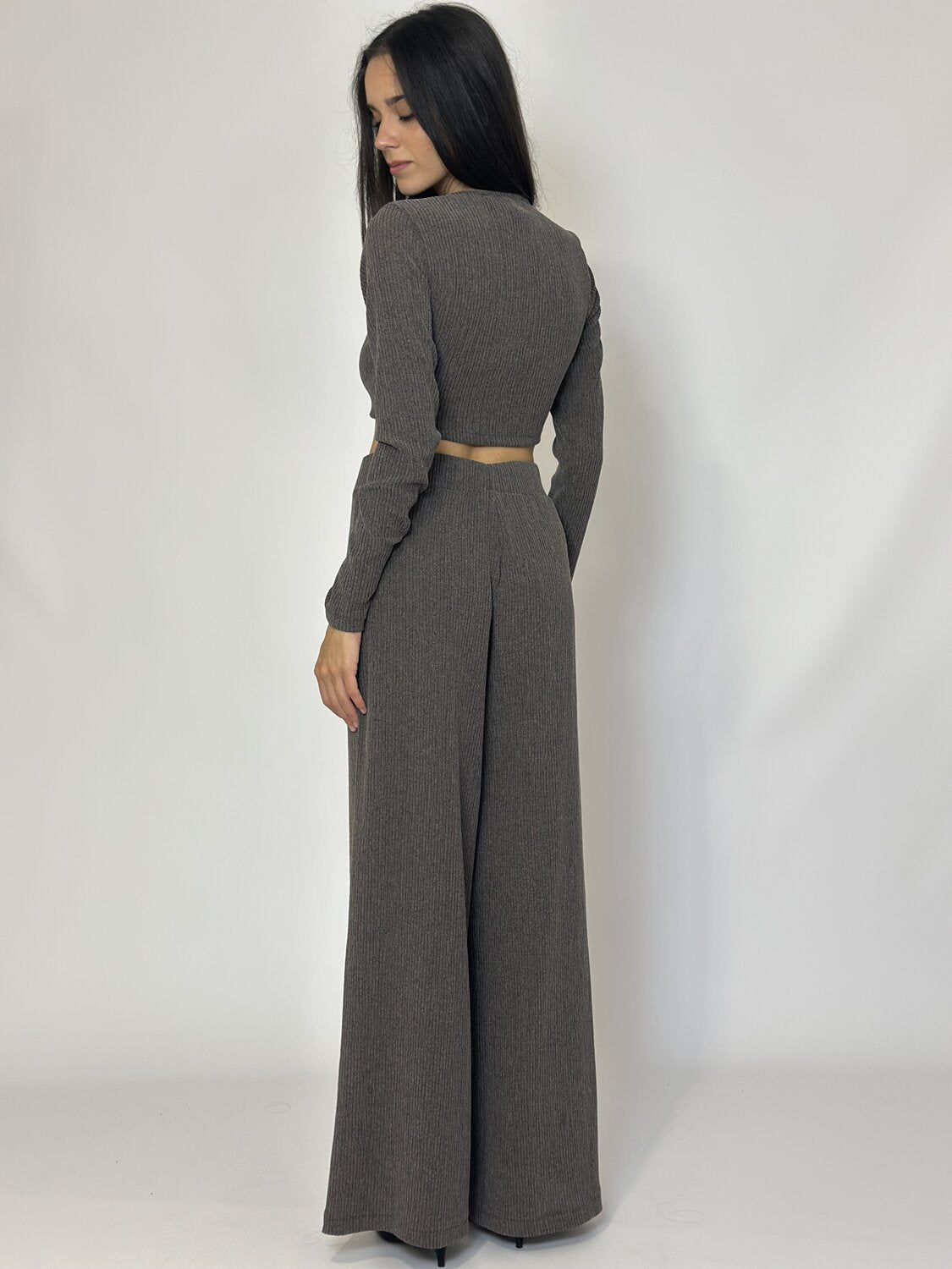 Pantalone Maglia Wide Leg Tortora - Haveone