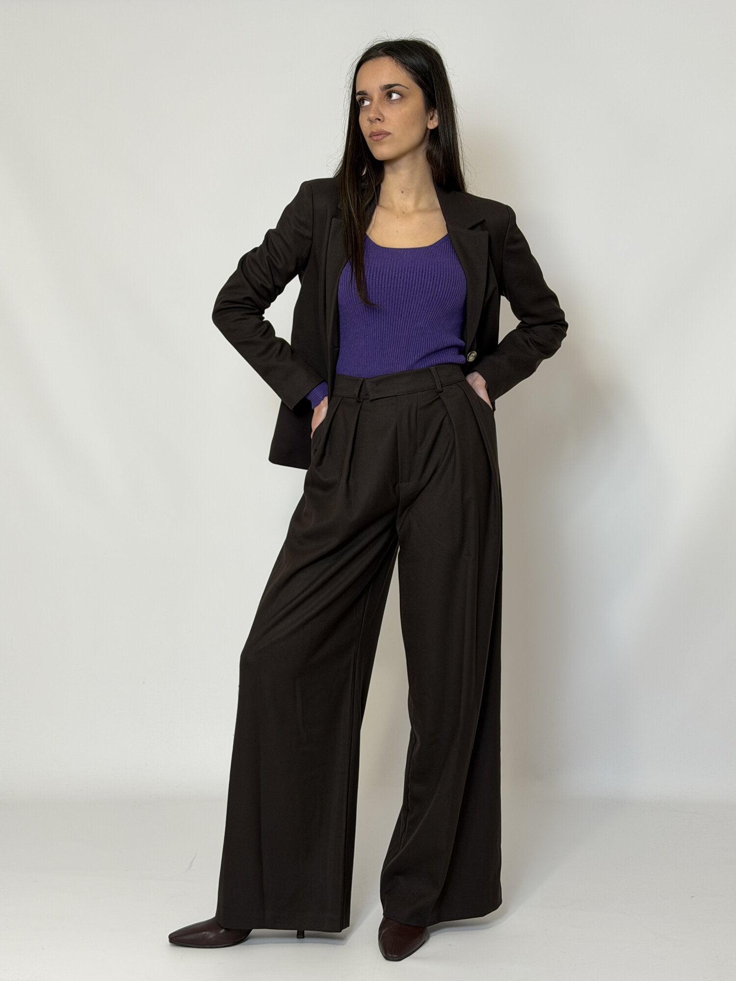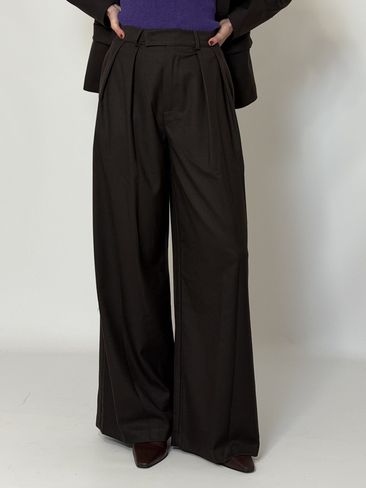 Pantalone palazzo a vita alta con pinces moro di Vicolo. Pantaloni con taglio palazzo, caratterizzati da una gamba molto ampia e dritta. Presentano delle pinces sartoriali in vita. La vita è alta. Disponibile nel colore moro.