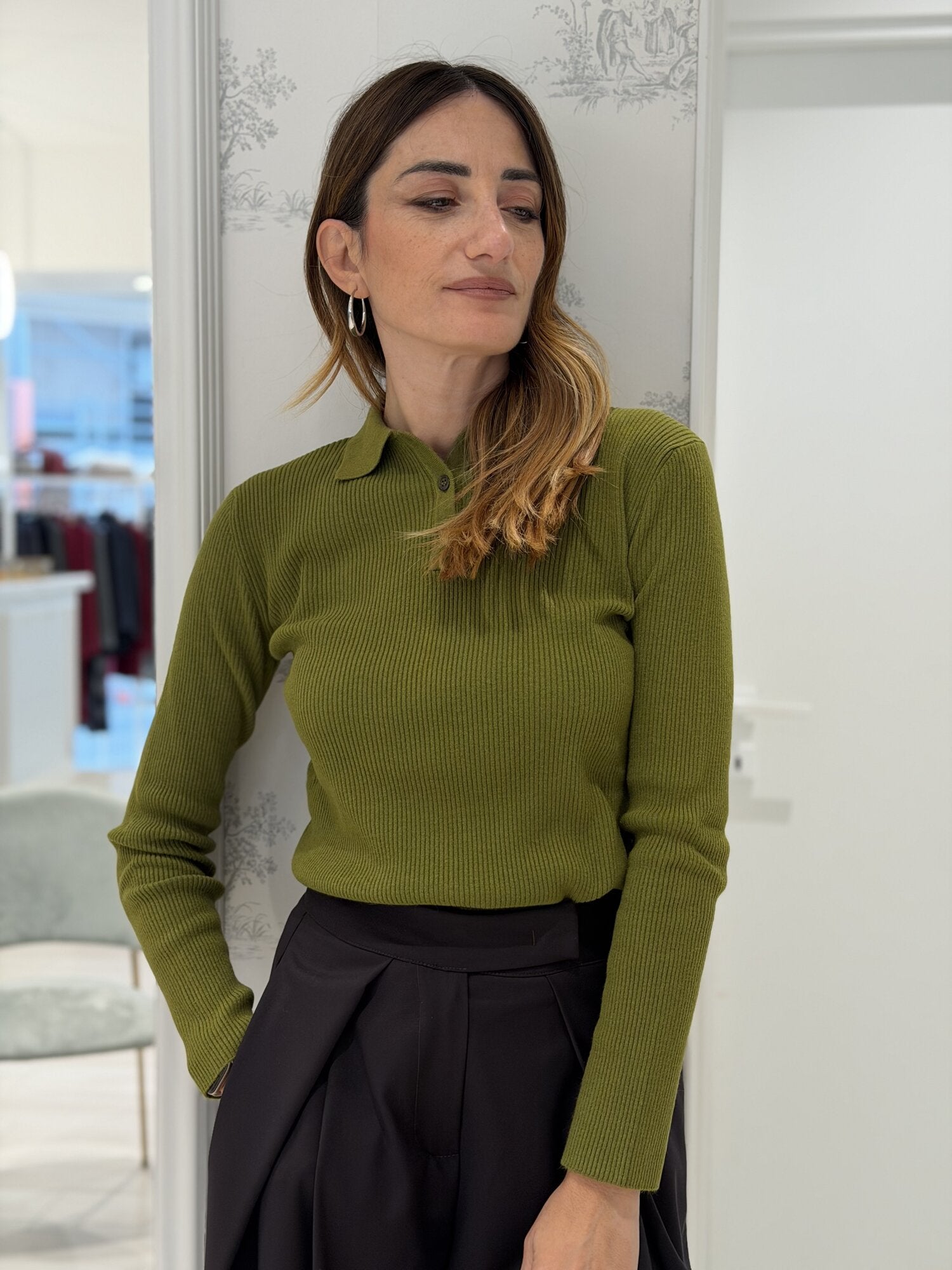Polo in maglia a costine verde - Vicolo