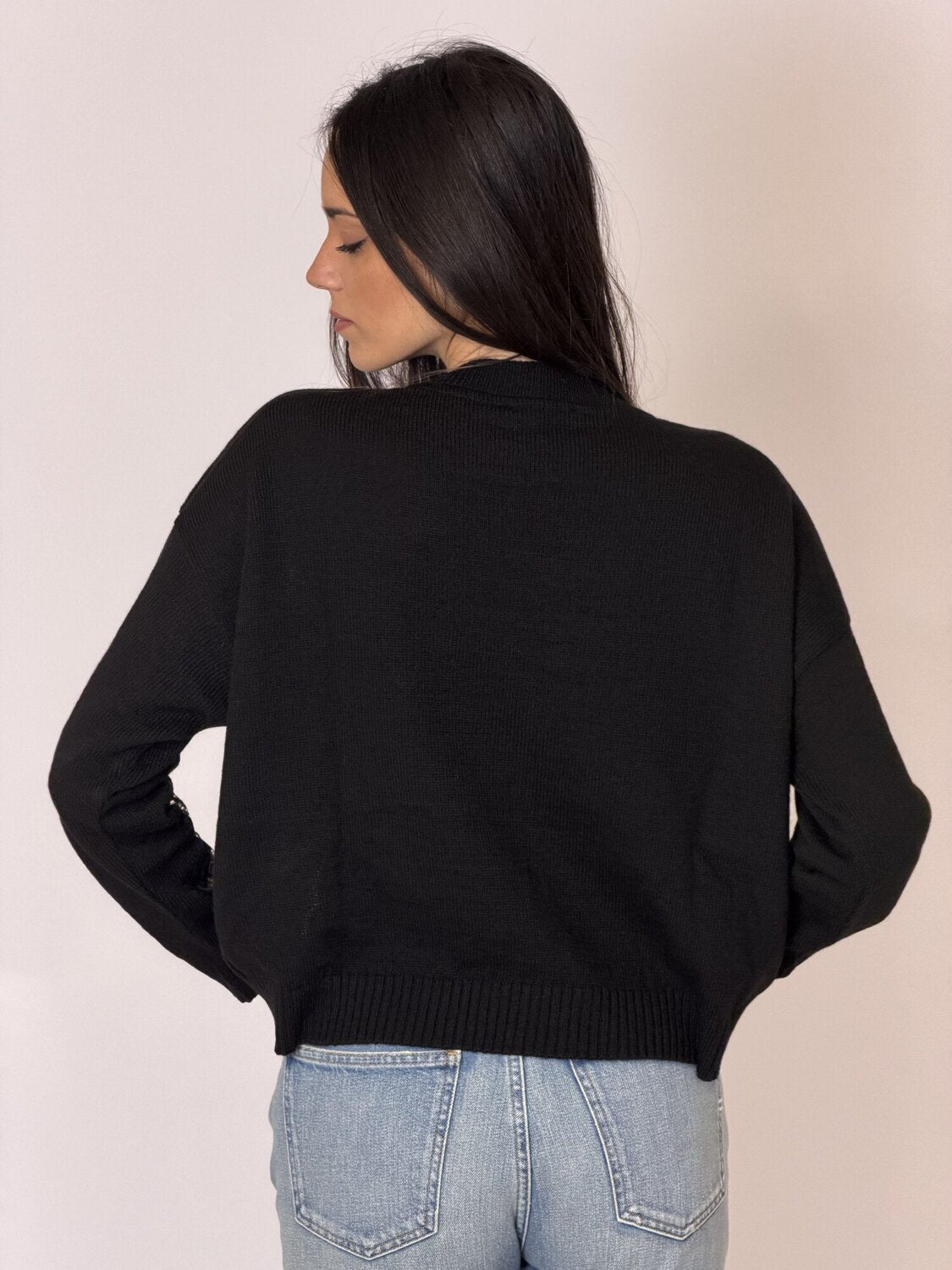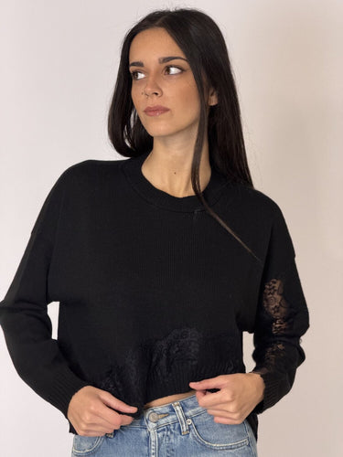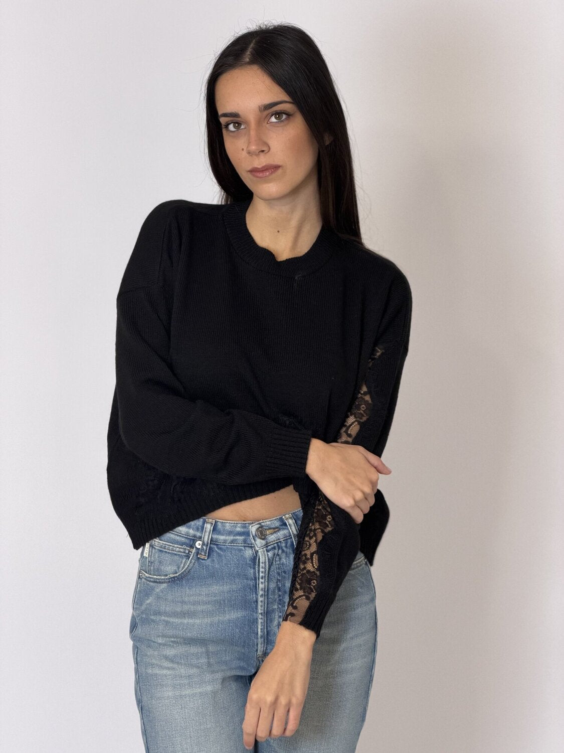 Pull asimmetrico girocollo pizzo nero - Vicolo