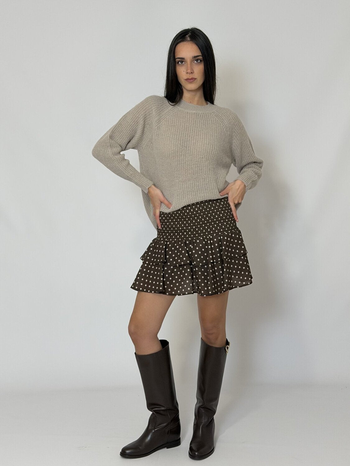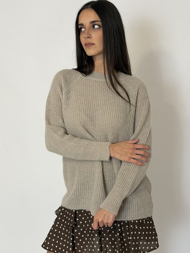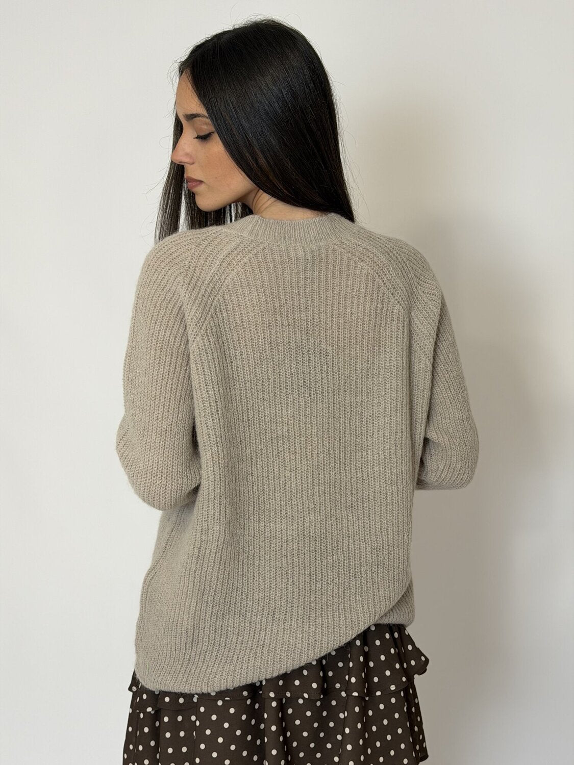 Pullover Doccia tortora di Emme Marella. Maglia in filato di misto alpaca e lana dal fit dritto. Scollo a giro e manica raglan. Polsi e fondo capo con dettaglio a costine. Disponibile nel colore tortora.