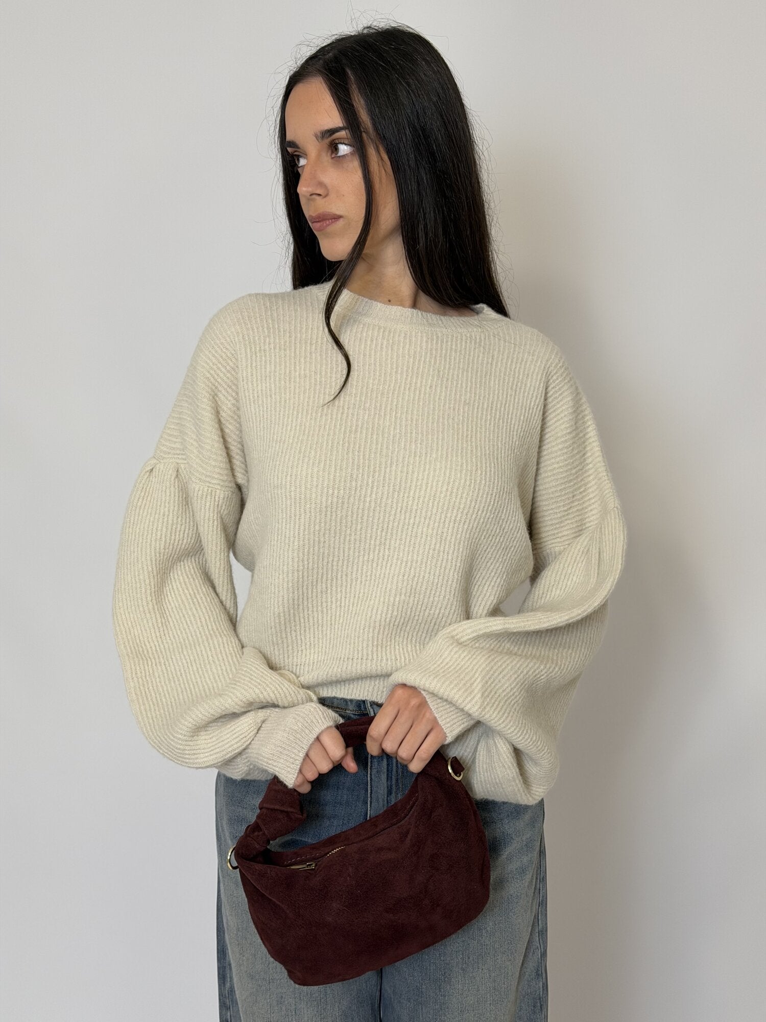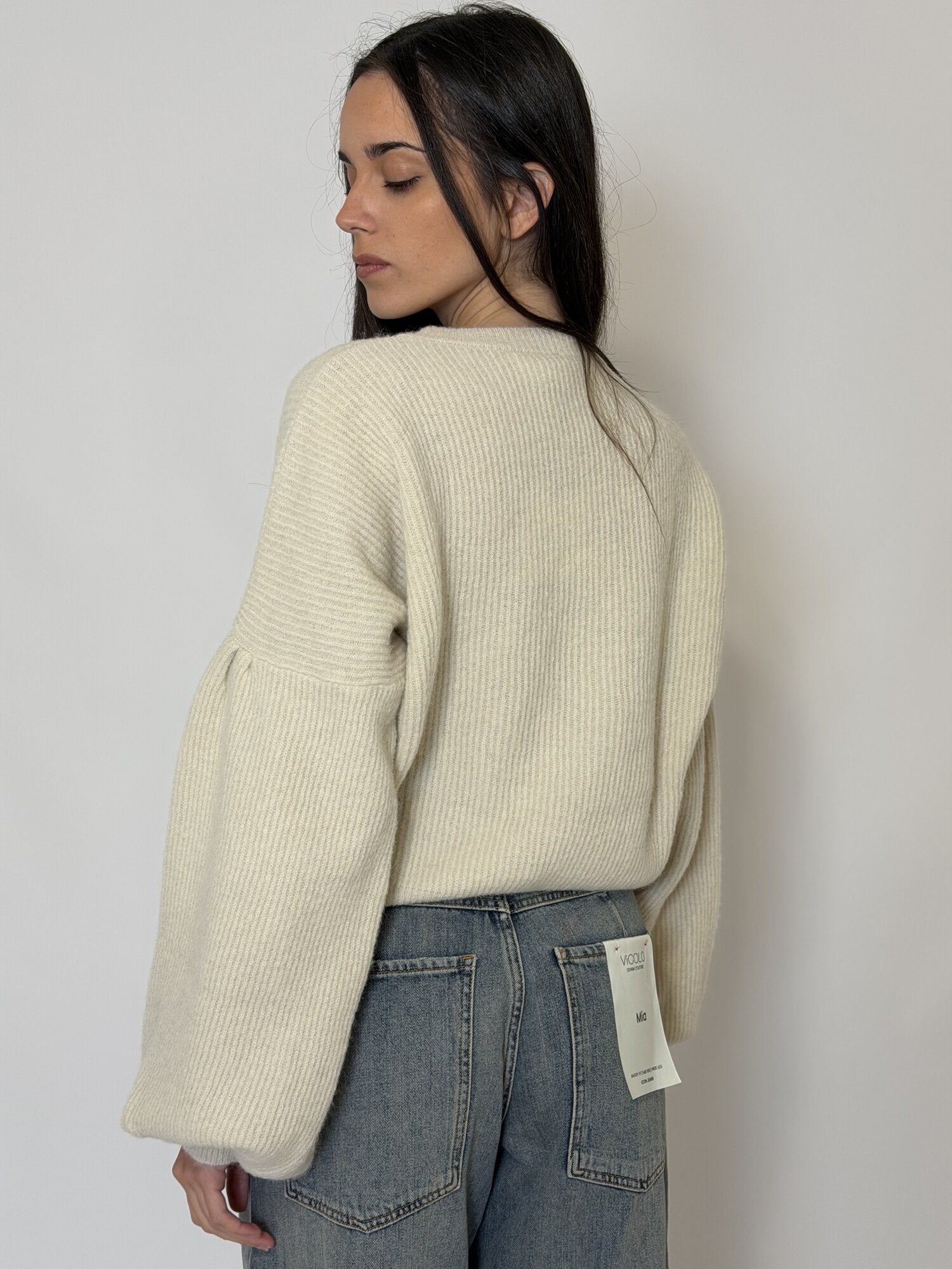 Pullover maniche a palloncino girocollo panna - Vicolo