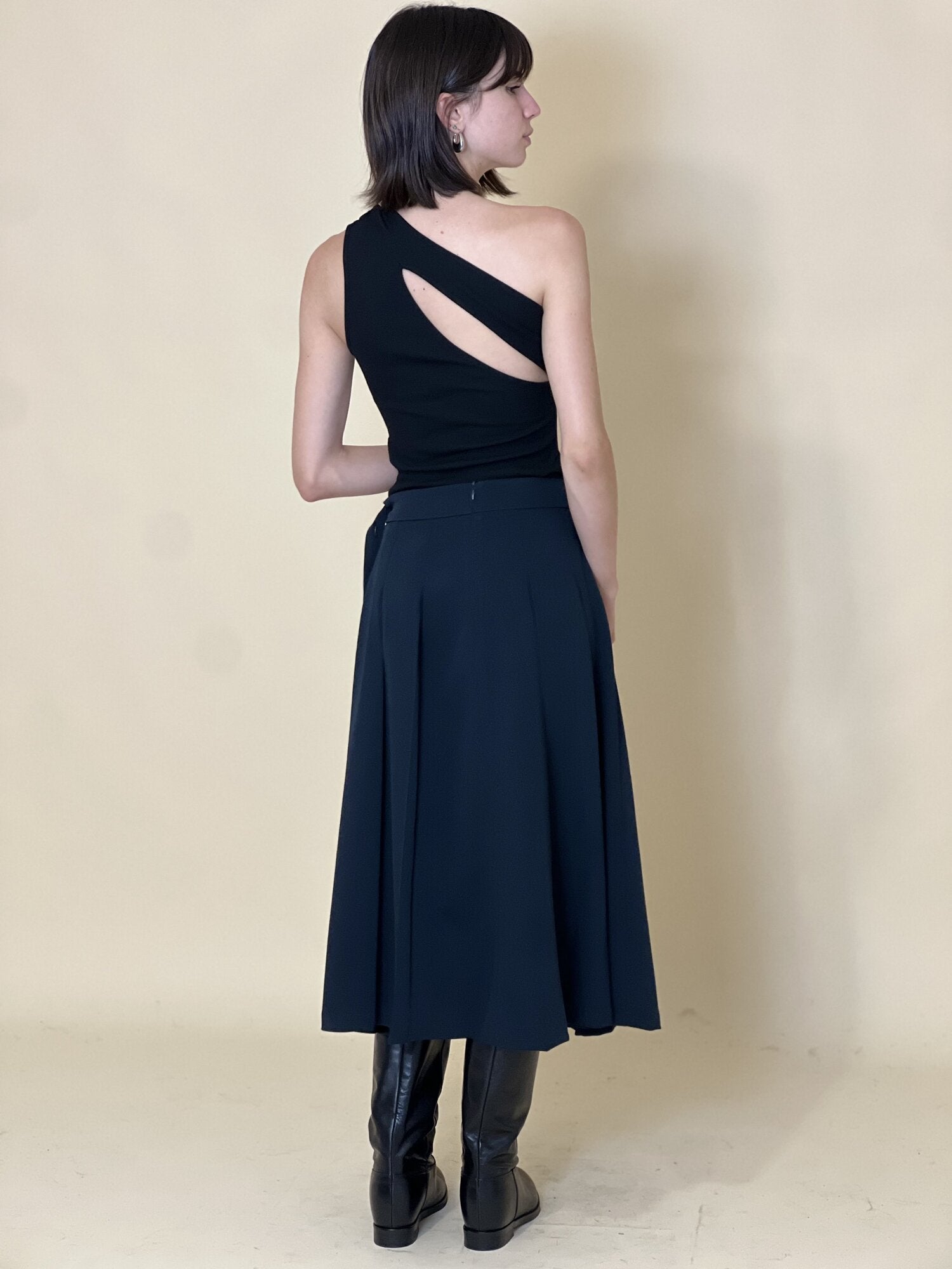 Top monospalla gioiello nero di Vicolo. Top monospalla. Dettaglio di scollo asimmetrico e spilla dorata sulla spalla. Vestibilità aderente. Disponibile nel colore nero e moro.